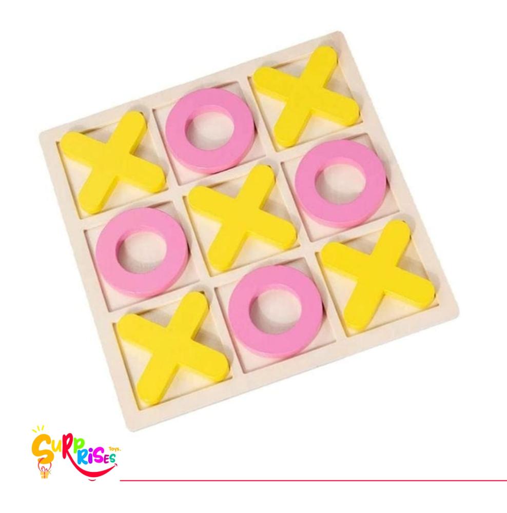 - القطع: قطع تحمل رمز X وقطع تحمل رمز O، وهي مصنوعة من الخشب، وقد تكون بألوان أو تصاميم مختلفة.